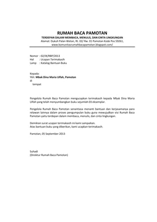 Contoh Surat Terima Kasih Atas Sumbangan Slesyc